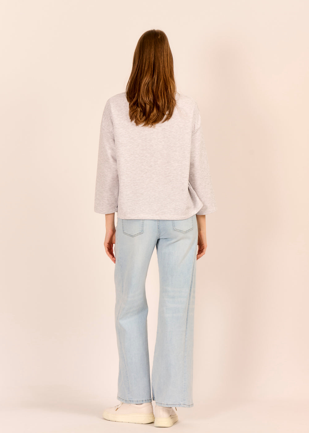 Der lässig geschnittene Sweaty mit 3/4-Arm ist der perfekte Freizeitlook. Helles Grau lässt sich mühelos kombinieren – ob entspannt, modern oder mit farblichen Akzenten.